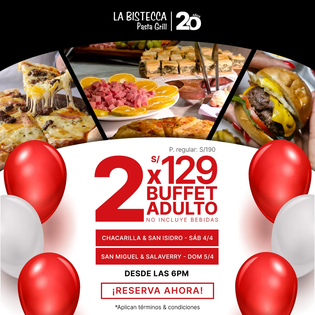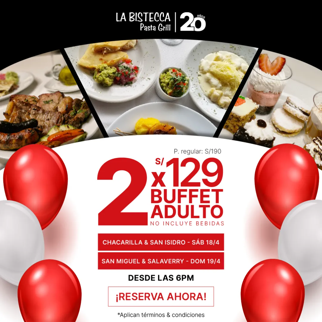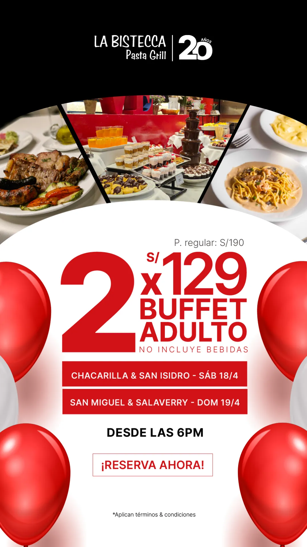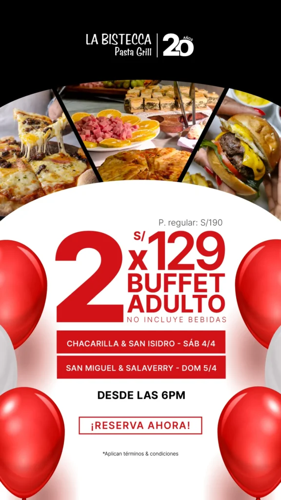 La Bistecca abrió sus puertas en Lima en 2006, trayendo el concepto de buffet ilimitado con estaciones variadas de carnes, pastas, ceviches, pizzas y postres. Desde entonces, hemos crecido con varios locales, manteniendo siempre el espíritu de compartir buenos momentos.